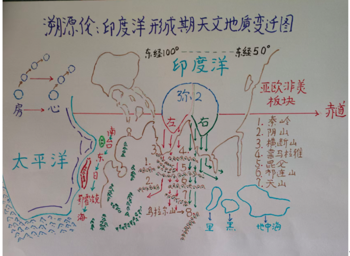 2.当弥2经过赤说念北10度。由于印度半岛地壳阻力增多。将弥2分割成把握两半并分开,赓续向北[下]运行。当运行至北总结线处住手隐没。中间部分形成印度半岛的德干高原。和东、西部的高止山脉。弥2的左半部。经过之处。形成孟加拉湾海域。弥2右半部却形成西部的阿拉伯海。