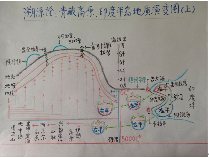 弥2左半部在吉大港处。裹带原始孟加拉湾部分区域。的地壳名义动植物。总共参加到地壳下。所经之处,形成孟加拉湾。弥2左半部。在松软糊状的地幔地核中,向北激动。与向南涌动地核相撞。形成广大的地核岩浆与能量[气体]压力。并将地壳地幔缓缓托起。共同形成了得的高原。该处的地壳地幔。随高度缓缓变薄。当了得高度达到约1万米。由于弥2左半部其裹带的地壳名义物资。陨形湖和动植物等的加入。弥2左半行进到。1的位置。地核内压力增多到极限,在太平洋出面前形成,东西走向的地质板裂。在最薄处倾圯。地核岩浆,喷涌而出。形成岩喷层后,冷却后回落至约9千米时。形成喜马拉雅山的珠穆朗玛峰。