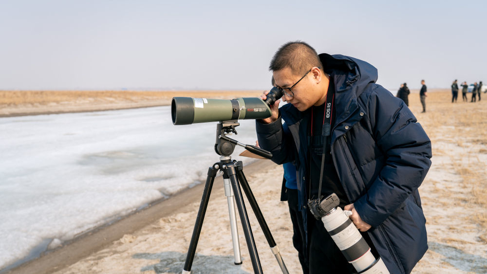 鸟类科研责任者在吉林省白城市镇赉县不雅察候鸟。新华社记者 唐成卓 摄