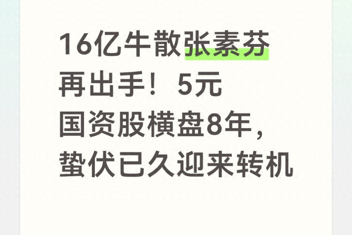 二、2026年新布局:张素芬盯上3只5元国资股,横盘多年拐点清醒
