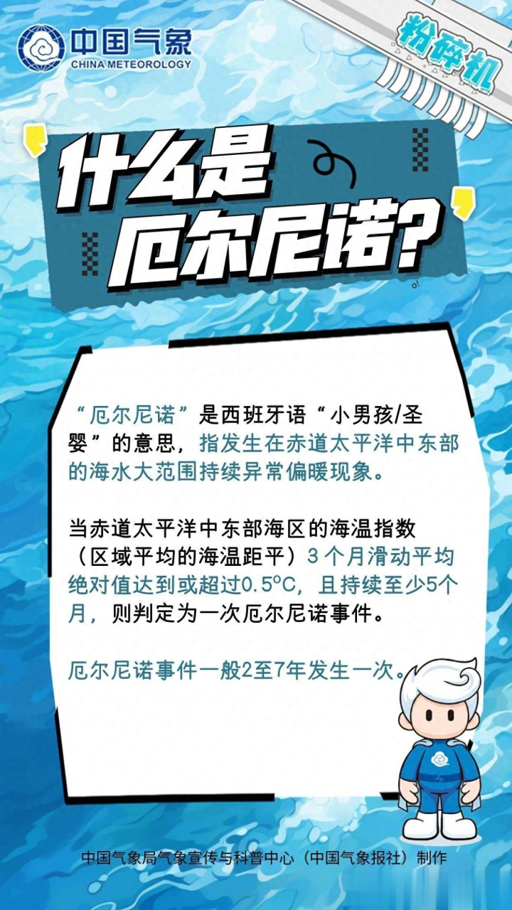 “厄尔尼诺”在西班牙语心仪为“小男孩/圣婴”,这一放纵的名字背后,是一种影响深入的海洋适意征象——专指发生在赤说念太平洋中东部海域,海水大范围、抓续性特别偏暖的气象。