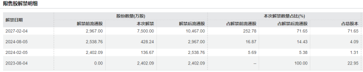 界面新闻注意到,到2027年2月4日,民爆光电控股股东、实际控制人谢祖华及其一致行动人立勤投资、睿赣合伙、立鸿合伙等所持71.65%公司股份将解禁。