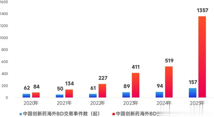 连年来翻新药出海BD来旧事件数和走动金额